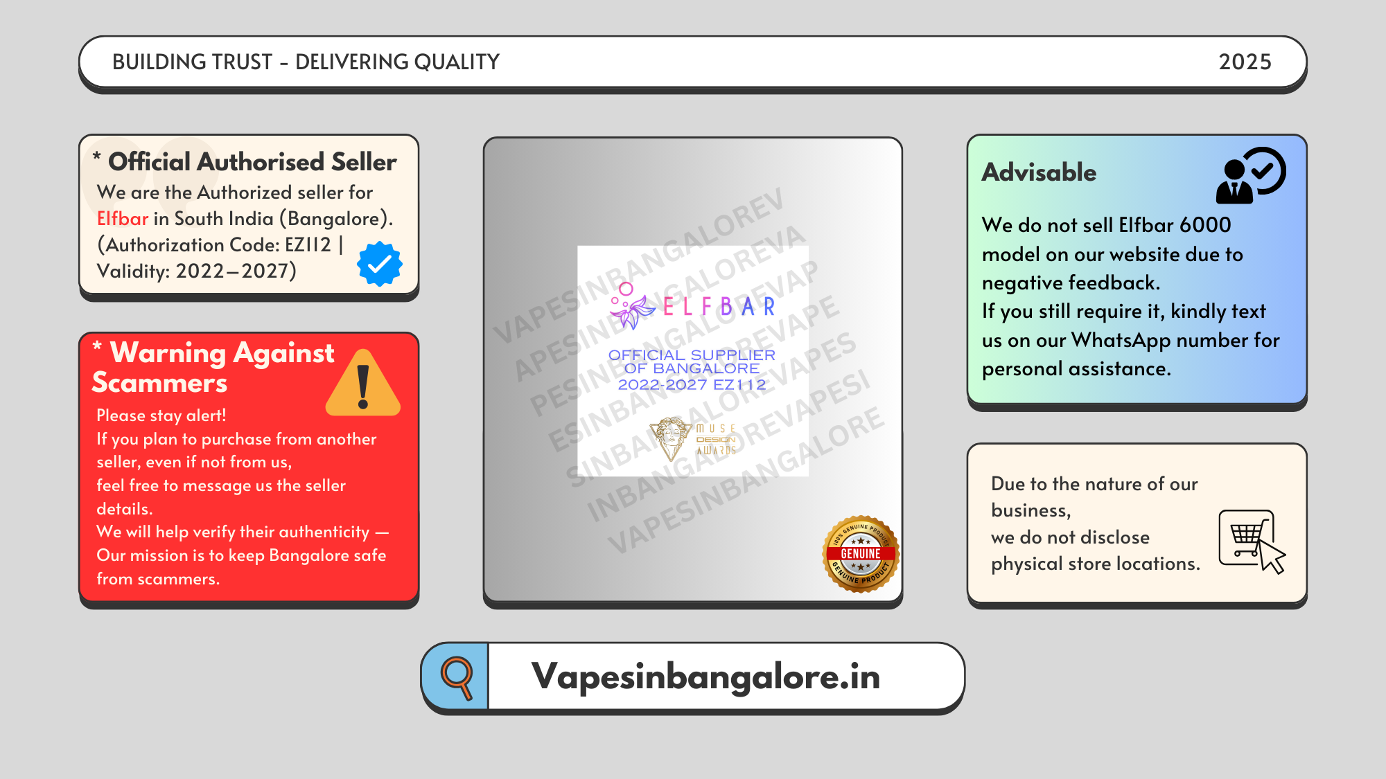 Discover Bangalore's most trusted vape shop offering premium vaping products and smoking accessories across the city. From the bustling streets of MG Road to the tech hubs of Whitefield, we serve vapers throughout Bangalore with an unmatched selection of high-quality products.
